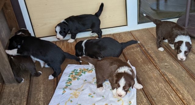Zum ersten Mal draußen und nach einem kurzen "nanu,wo sind wir denn" haben sie erst mal alles erforscht, denn jede winzige Kleinigkeit war ja neu für sie. |