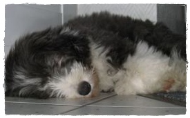 Ihre Besitzerin hat mir geschrieben: Lilli ist sehr menschenbezogen, verschmust und verschmitzt, draußen noch immer verspielt, dafür drinnen ruhig und ausgeglichen. Mit einem Wort: ein traumhafter Beardie.... der allerdings gelegentlich eher Ähnlichkeit mit einem langhaarigen Ferkel hat. |