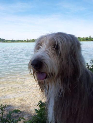Robin ist zu einer ganz netten Familie in die Nähe von Rüdesheim umgezogen. Er hat sich auch ganz schnell eingelebt und zeigt seinen Menschen, die schon vor ihm einen Beardie hatten, daß es mit der Langeweile nun vorbei ist. Auch bei ihm ist ein Besuch nicht mal eben möglich und so freuen wir uns immer mal über das eine oder andere Foto. |